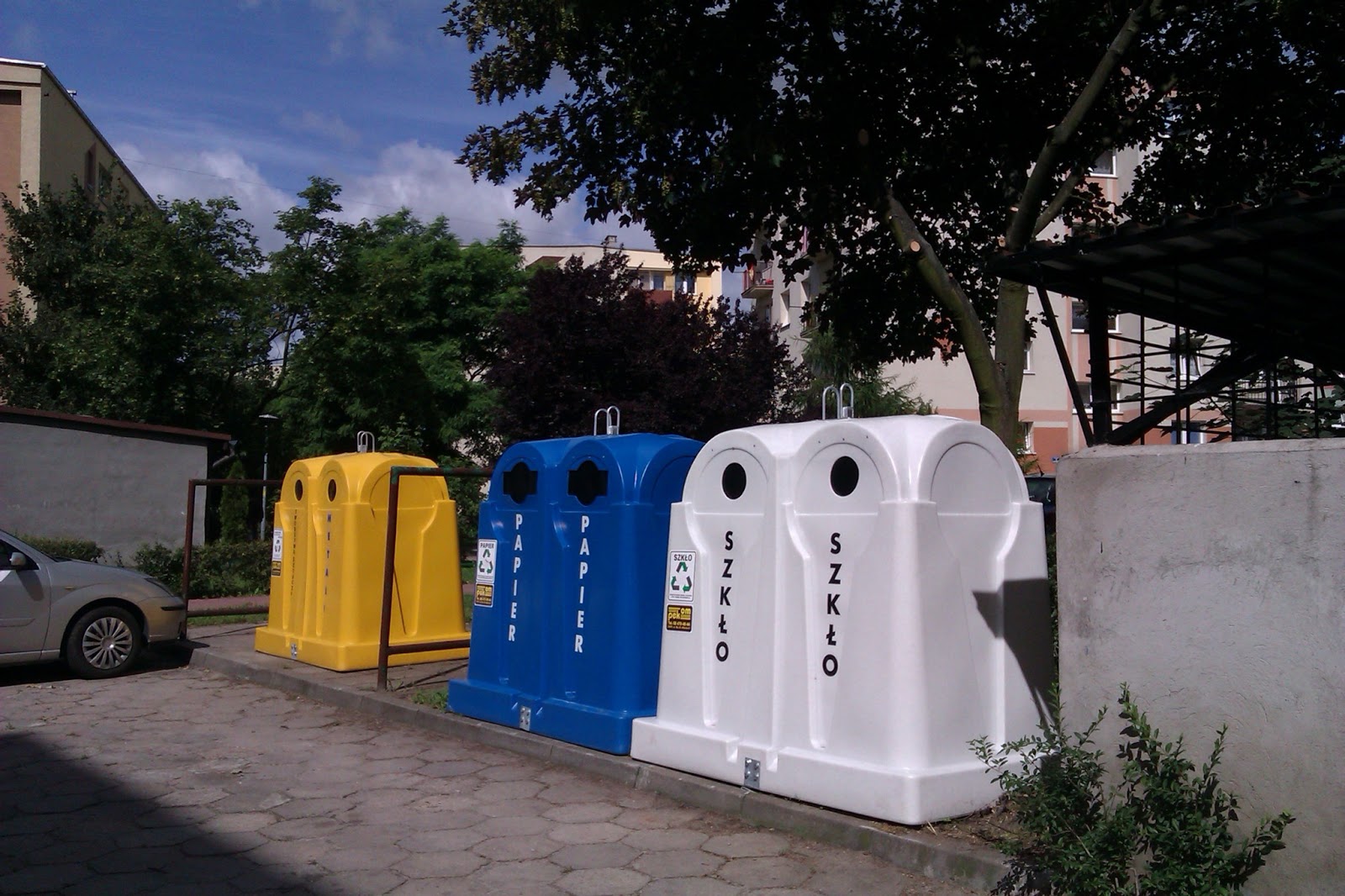 Nowe śmietniki do segregacji nie zawsze mają postać kopuł. Takie z kwadratową podstawą wydają się lepsze, bo chyba więcej ich wejdzie na samochód.