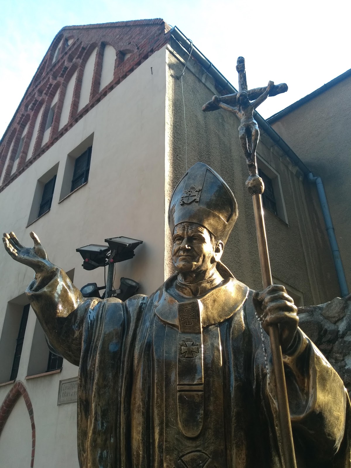 Pod jego żarskim pomnikiem w rocznicę urodzin JP II znicze i kwiaty.